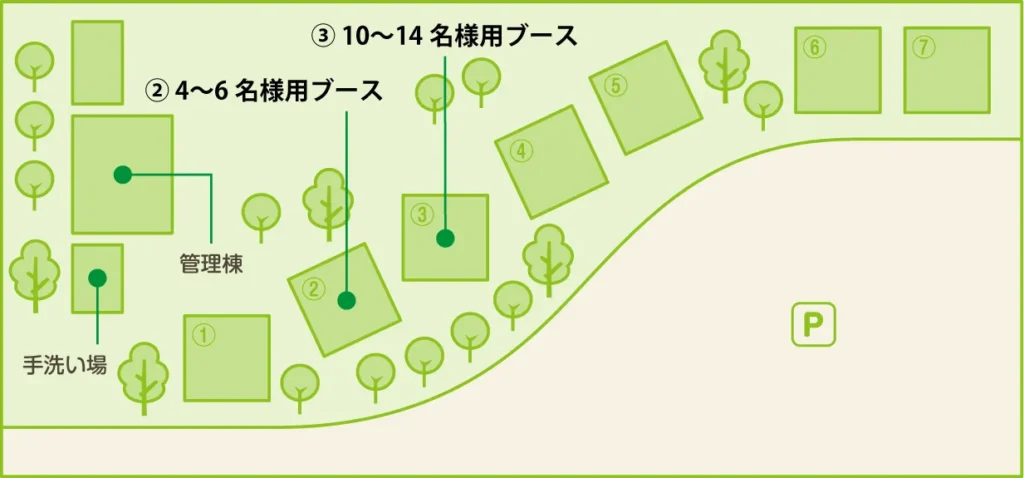 防寒対策を施したブースは、上記 ②、③ の2ブースとなります。